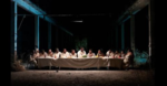 Menschen sitzen am Tisch und re-inszenieren das letzte Abendmahl, das berühmte Gemälde von Leonardo Da Vinci