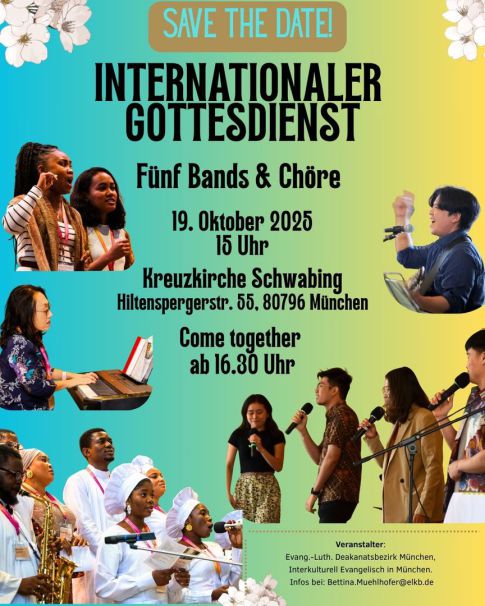 Internationale christliche Gemeinden Münchens laden ein zum gemeinsamen Gottesdienst und feiern die Vielfalt und Mehrsprachigkeit des Lebens in München.